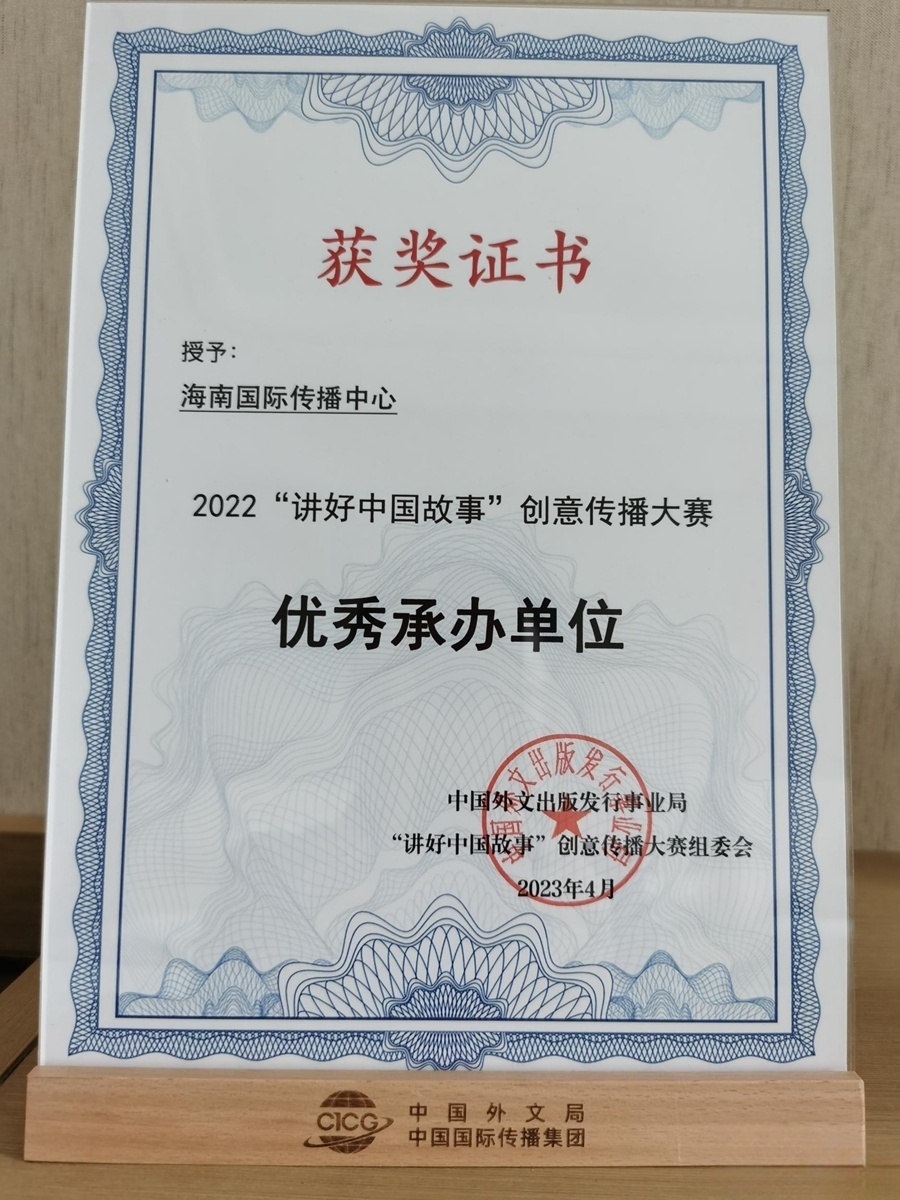 海南国际传播中心原创视频作品《遇见自贸港 | 大山中的“林三代”》荣获“2022年“讲好中国故事”创意传播大赛全国一等奖,“讲好中国故事”创意传播大赛是由国务院新闻办公室指导,中国外文局主办,以“讲好新时代中国故事”为宗旨,面向国内外社会公众公开征集各领域中国故事、传播中国好声音、树立中国良好国际形象的年度官方品牌活动。