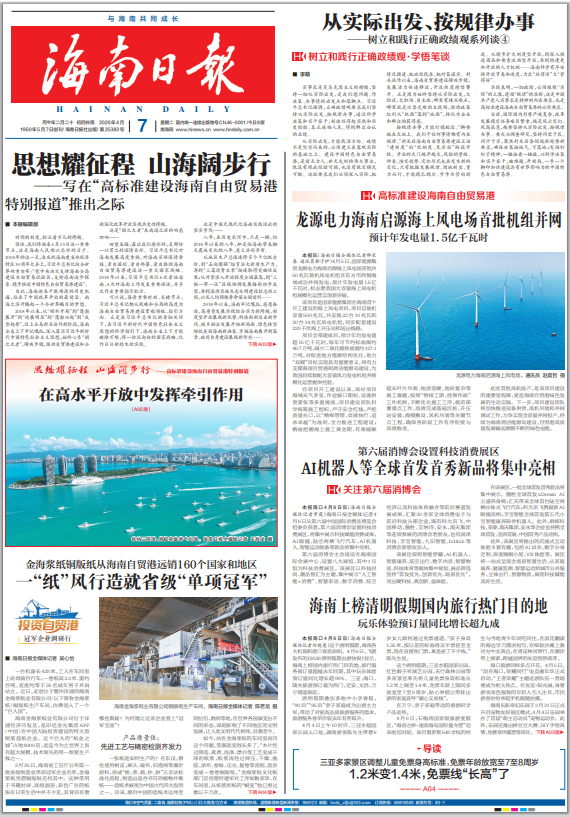 《海南日报》2026年4月7日A01版版面图